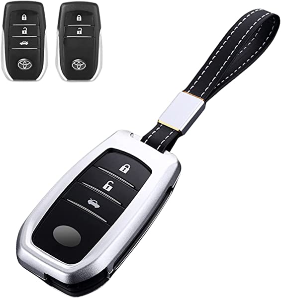 キーケース トヨタ車用 合金 トヨタ スマートキーケース キーホルダー トヨタキーカバー 新型 ハリアー キーホルダー2個 80系 ハイラックス GUN125 ランドクルーザー200系 ヤリス ミライ MARK 専用 2/3ボタン (シルバー)