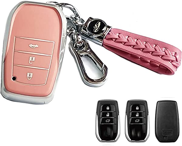 トヨタ車 対応 キーケース シリコンTPU 革柄 トヨタ スマートキーケース トヨタ キーホルダー トヨタ キーケースカバー TOYOTA C-HR プリウス 50系 キーカバー 新型 カローラ RAV4 50系 カムリ70系 ランドクルーザー プラド 2/3ボタン (O 3ボタンピンク) ...