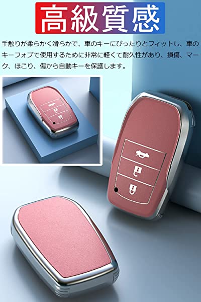 トヨタ車 対応 キーケース シリコンTPU 革柄 トヨタ スマートキーケース トヨタ キーホルダー トヨタ キーケースカバー TOYOTA C-HR プリウス 50系 キーカバー 新型 カローラ RAV4 50系 カムリ70系 ランドクルーザー プラド 2/3ボタン (O 3ボタンピンク)