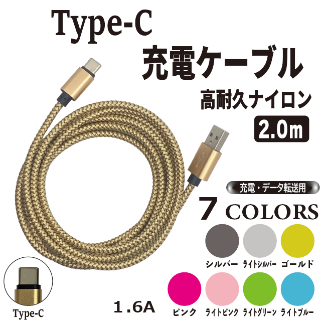 【 3本購入で+1本プレゼント! 】 Type-C 充電 ケーブル 2m ナイロン android 【 商品レビュー記入でポイント10%還元 】