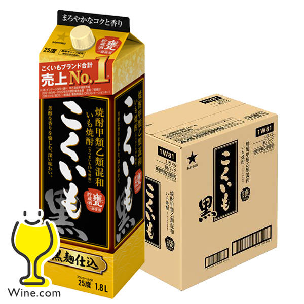 6本 焼酎 1.8L 紙パック 送料無料 サッポロ こくいも 黒 25度 1800ml×1ケース/6本(006)『OMS』 焼酎甲類乙類混和いも焼酎 黒麹仕込