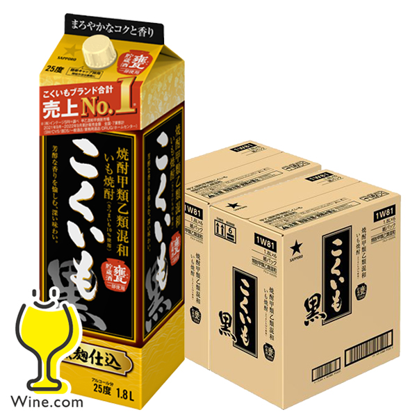 12本 焼酎 1.8L 紙パック 送料無料 サッポロ こくいも 黒 25度 1800ml×2ケース/12本(012)『OMS』 焼酎甲類乙類混和いも焼酎 黒麹仕込