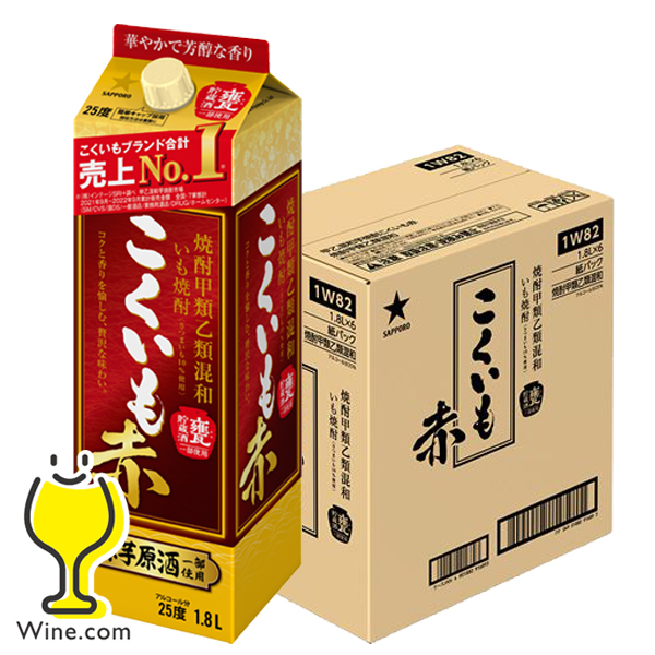 6本 焼酎 1.8L 紙パック 送料無料 サッポロ こくいも 赤 25度 パック 1800ml×1ケース/6本(006)『OMS』 焼酎甲類乙類混和いも焼酎