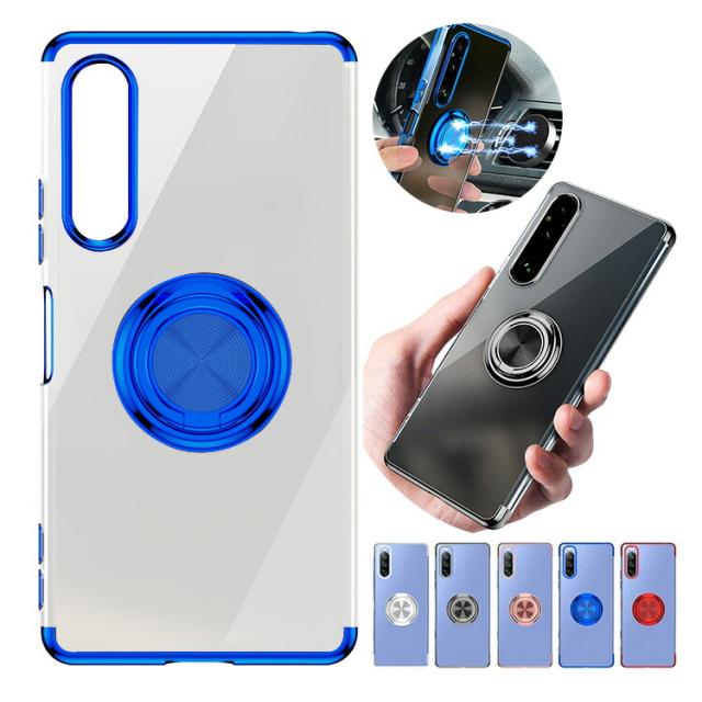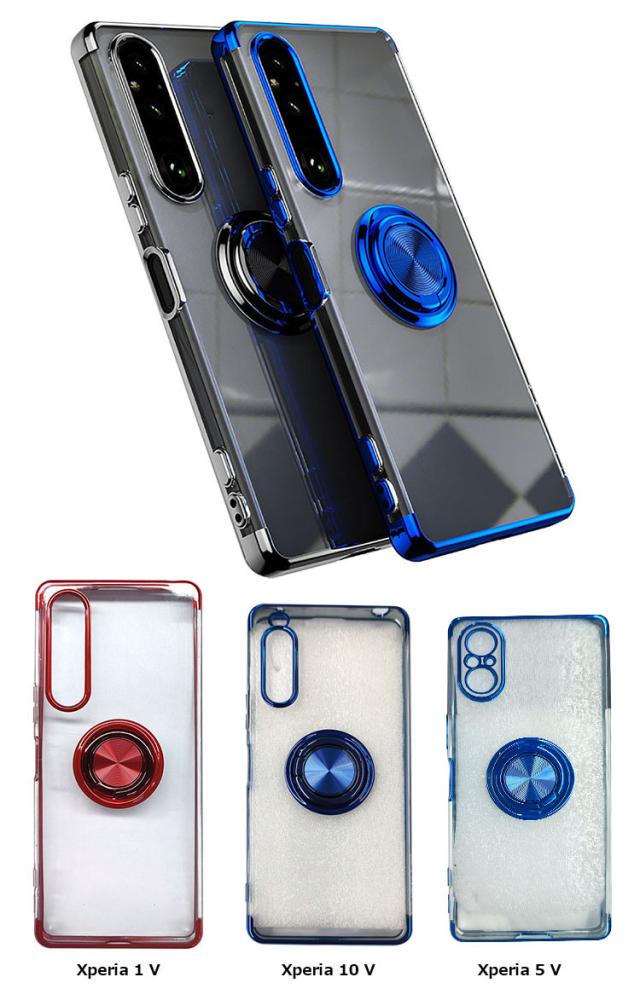 Sony Xperia 1 V ケース Xperia 10 V カバー Xperia 5 V メッキ クリア 透明 シンプル 一体型リング付き マグネット式車載ホルダー対応 ストラップホール付き 背面ケース ソニー エクスぺリア1 V SOG10 SO-51D Gaming Edition/10/5 V ソフトケース/カバー スマホケース