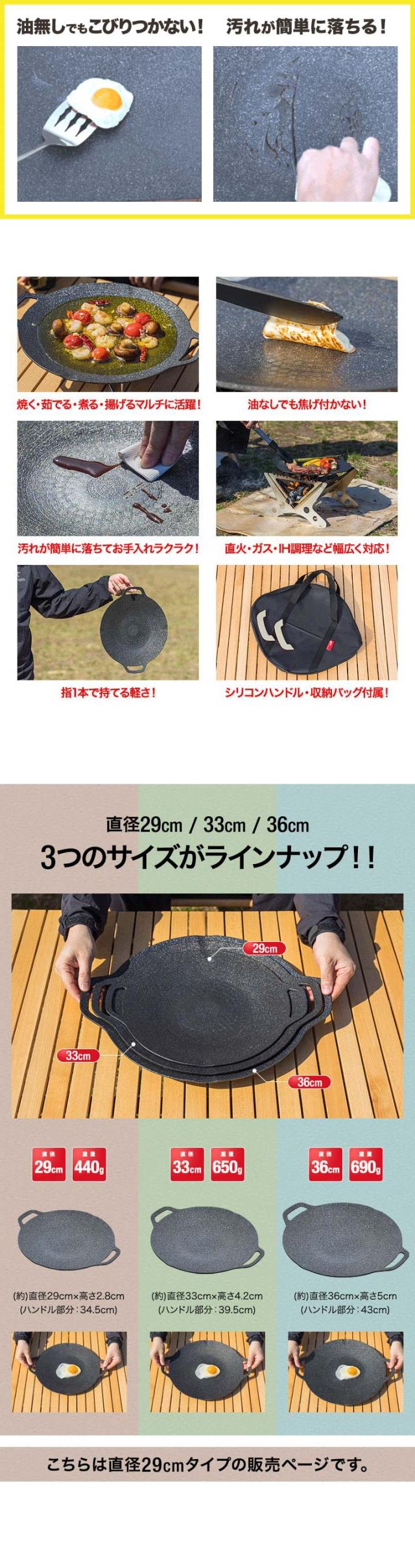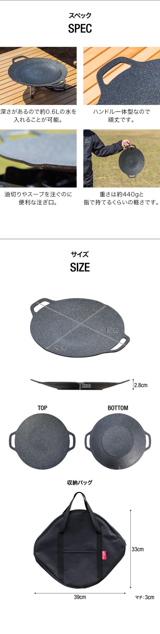 | サイズ: 本体:(約)直径29cm(34.5cm※ハンドル含む)×高さ2.8cm 収納バッグ:(約)幅39cm×マチ3cm×高さ33cm |