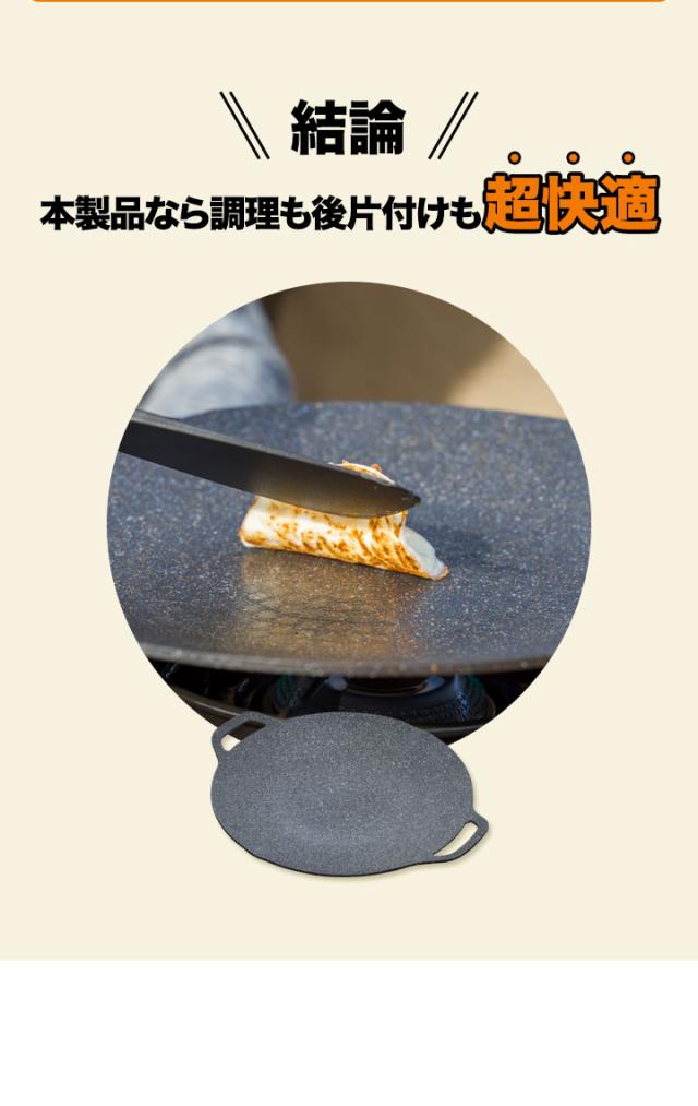 | 特記事項: ※直火・ガス・IH・電気調理器など様々な熱源で使用可能。 ※シーズニングは必要ありません。 ※食洗器には対応しておりません。 ※家庭用カセットコンロでご使用される場合、グリドルパンがカセットコンロ本体を覆ってしまうと輻射熱がガスボンベを発熱させる恐れがありますので、熱したグリドルパンまたはハンドルをガスボンベに触れない、近づけないよう、十分に注意して下さい。 ※収納袋の内側にはPVC(ポリ塩化ビニール)コーティングを施しています。PVC(ポリ塩化ビニール)コーティングには臭いが有り、開封直後は人によって過敏に感じやすい場合もございます。どうしても気になる場合などは、屋外など直射日光の当たらない風通しの良い場所で、1〜2日程度吊るしていただくと臭いが軽減します。 |
