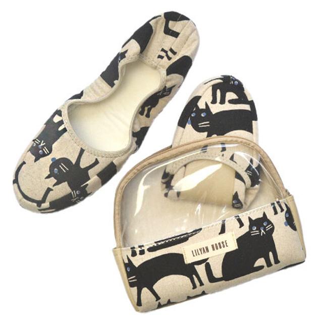 【残りわずかで終了】スリッパ 携帯用 猫柄 黒猫 キャット トラベル 旅行 ポーチ付き 折りたたみ 22〜24cm ルームシューズ 軽量 コンパクト 入学式 卒業式 学校行事 保護者会 参観日 室内履き レディース かわいい おしゃれ ギフト プレゼント 【 誕生日 】