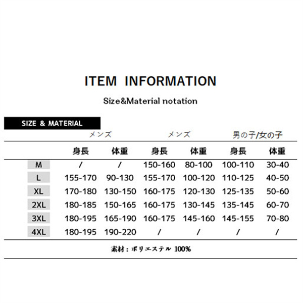 サイズ:/M/L/XL/2XL/3XL/4XL/5XL/6XL/7XL