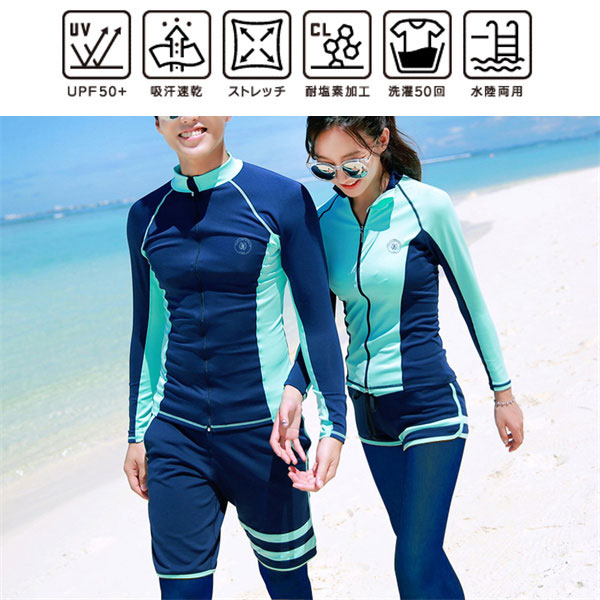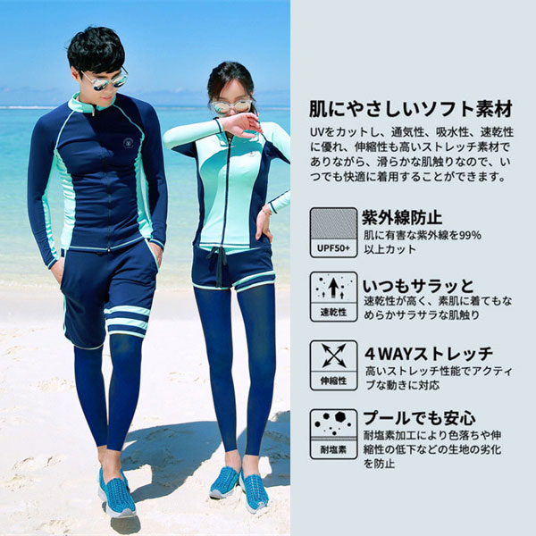 ラッシュガード 水着 レディース メンズ ペア カップル 日焼け止め ペアルック 上下 セット ウェットスーツ セットアップ UVカット