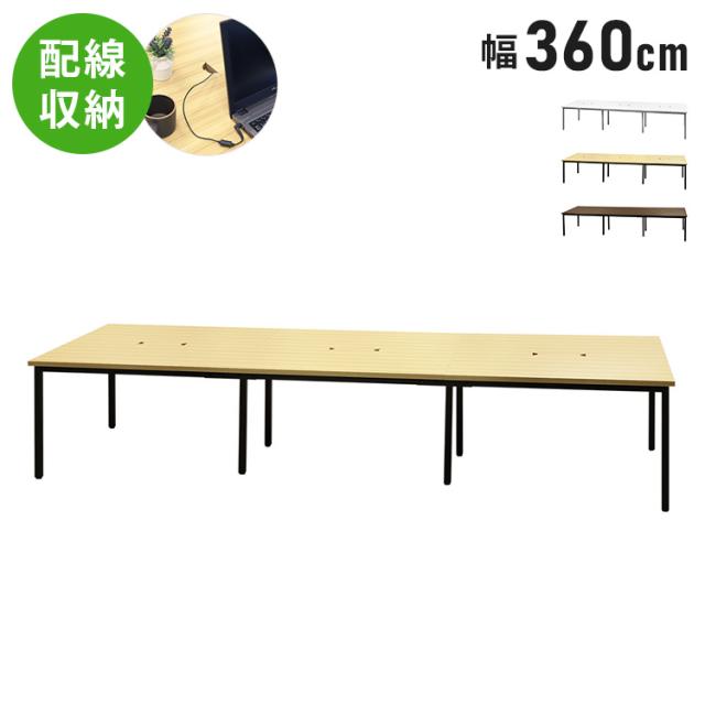 【※法人様限定販売】 デスク 配線ボックス付き 360×120cm フリーアドレスデスク ミーティングテーブル ワークテーブル オフィスデスク(代引不可)【送料無料】