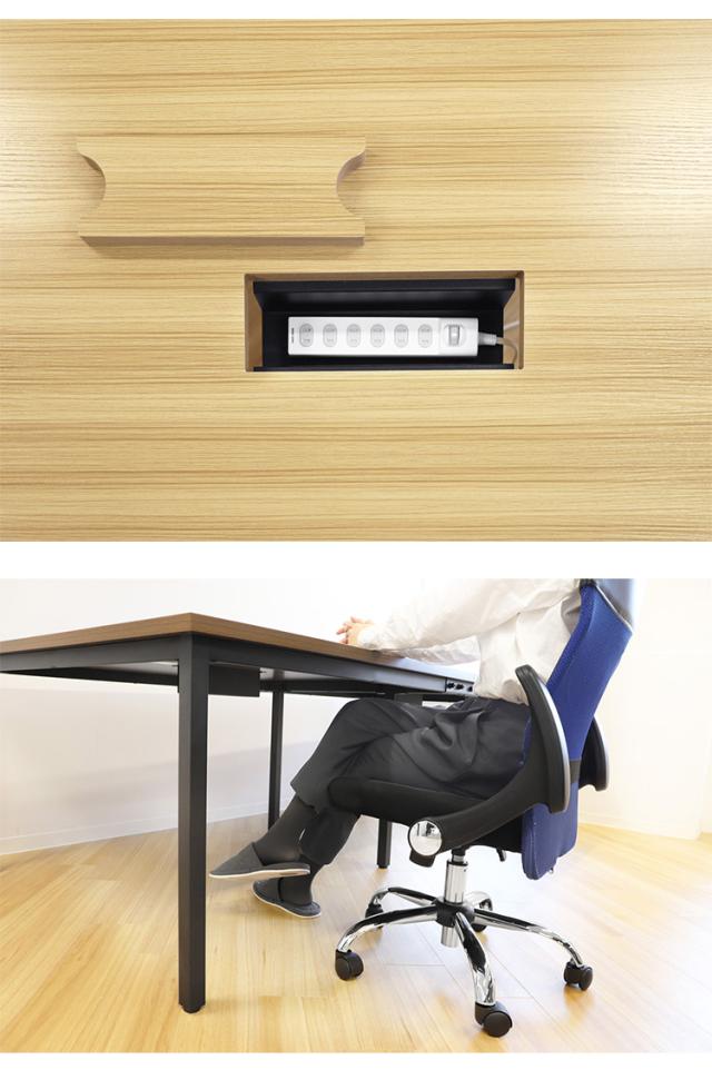 フラット型の配線ボックス付きなので、フリーアドレスデスクとして、ミーティングテーブルとして、幅広い用途で大活躍。