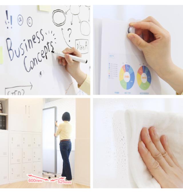 全面ホワイトボード仕上げなので板面いっぱいに書き込み可能。(両面使用可能)