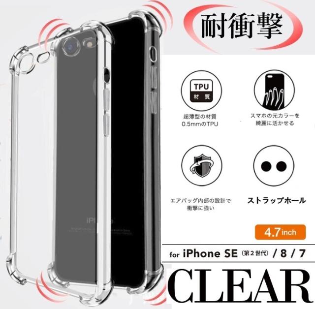 iPhone SE第2世代/8/7耐衝撃ケース エアクッション構造 TPUケース 4.7インチ ソフトケース アイフォン8/7 ケース ストラップホール付き iPhoneSE2020保護