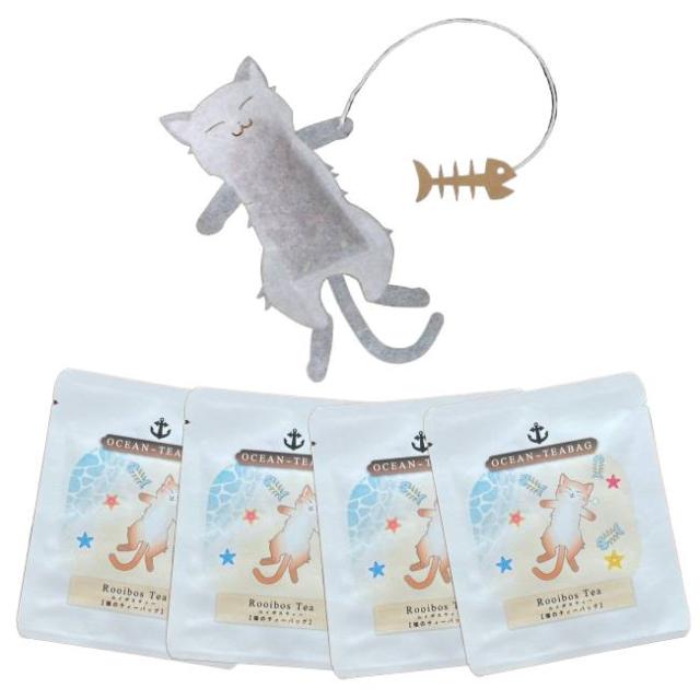 オーシャンティーバッグ ネコのティーバッグ ルイボスティー 4包 猫 ねこ 動物 動物園 おやつ ティータイム お家時間 プレゼント 【メール便無料】