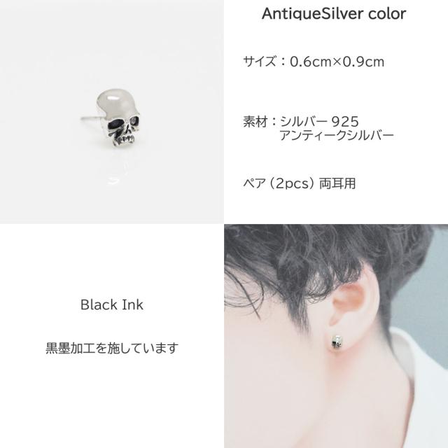roen ロエン ピアス メンズ アクセサリー スカル ドクロ ガイコツ シルバー キュービック ジルコニア スタッド