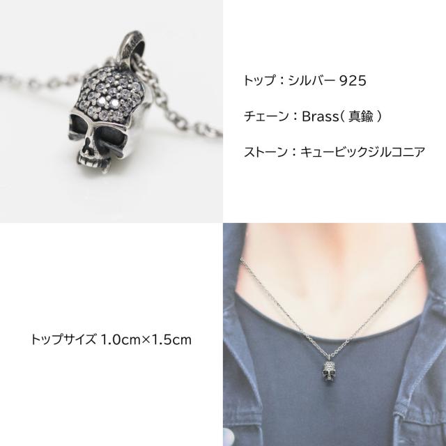 roen ロエン ネックレス ペンダント メンズ アクセサリー スカル ドクロ ガイコツ シルバー キュービック ジルコニア