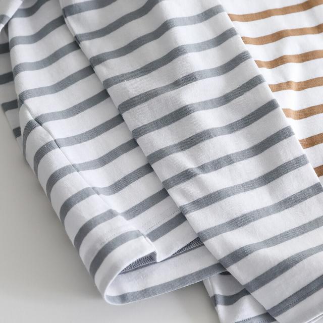 白地にベージュのボーダー。ブラウン寄りのベージュは大人の雰囲気。