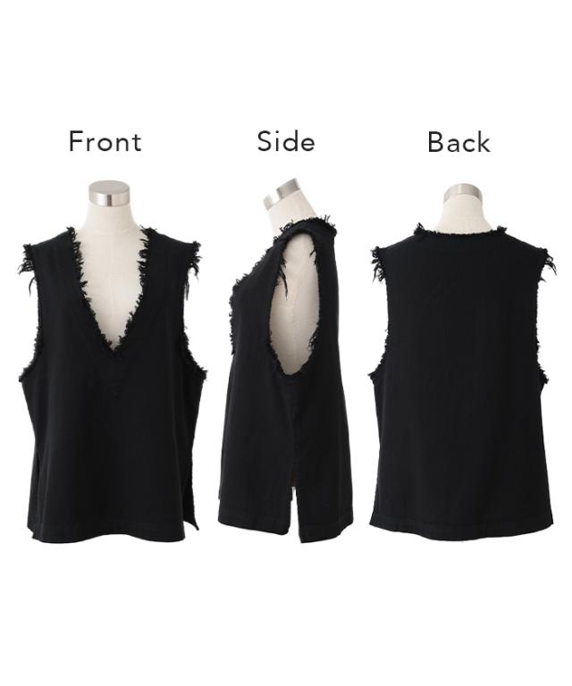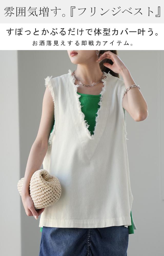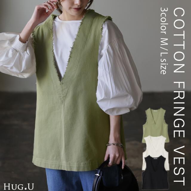 今っぽ 「 重ねて 体型カバー 」フリンジ ベスト チュニック フリンジベスト 綿100 レディース レイヤード トップス ロング スリット 深Vネック 重ね着 Vネック お洒落 袖なし お尻が隠れる 薄手 ジレ ビッグ 黒 ブラック 大きいサイズ 冬 秋 HUG.U 秋新作