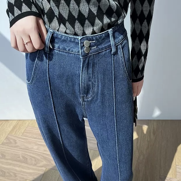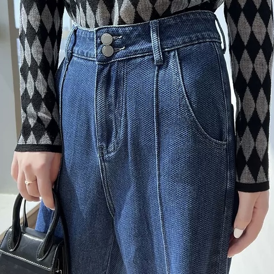 縦に入ったラインが縦長効果で美脚に魅せてくれるほか、ボタンが二つあしらわれアクセントになっています。