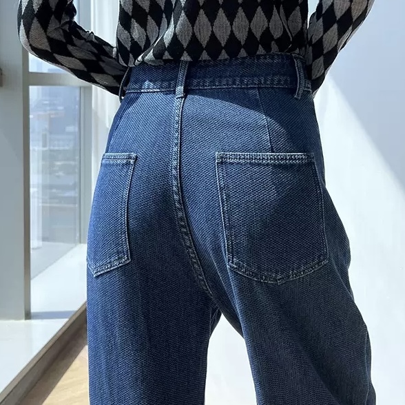 美しいシルエットが特徴のデニムパンツ。