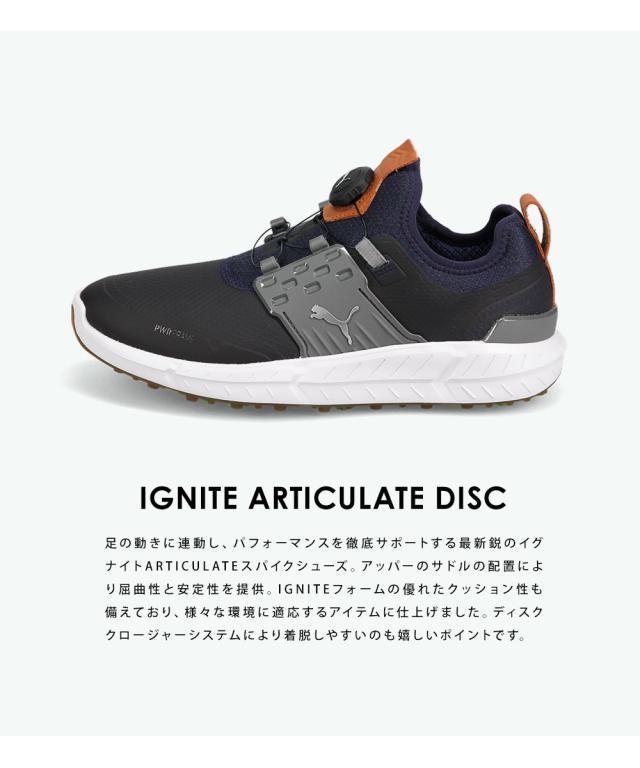 プーマ ゴルフシューズ メンズ スニーカー 黒 ソフトスパイク 運動靴 スポーツ ゴルフ シューズ スパイクシューズ ローカット ディスククロージャー 靴 イグナイト アーティキュレート ディスク puma IGNITE ARTICULATE DISC ブラック ホワイト ネイビー グレー 376079