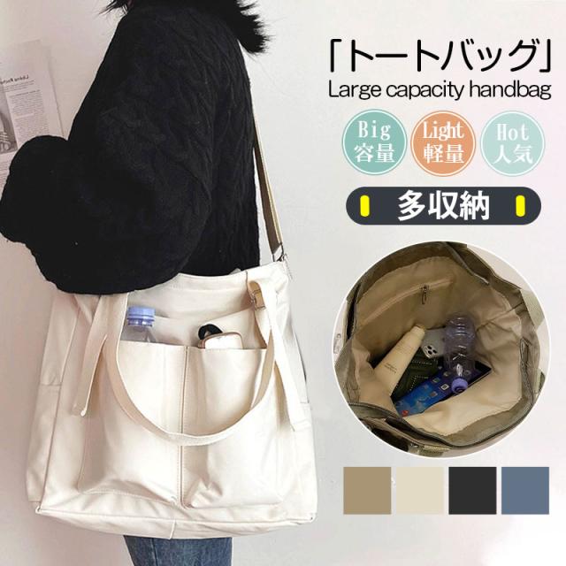 【水曜日まで!10%クーポン配布中】 トートバッグ レディース a4 大きめ 大容量 軽量 軽い 肩掛け ナイロン カジュアル 撥水 通学 通勤 多収納 ポケット エコ