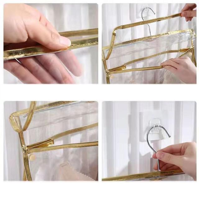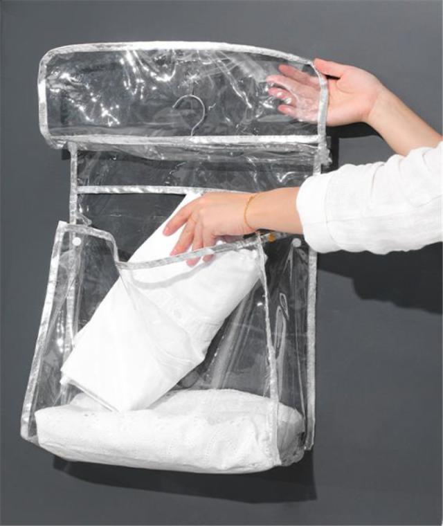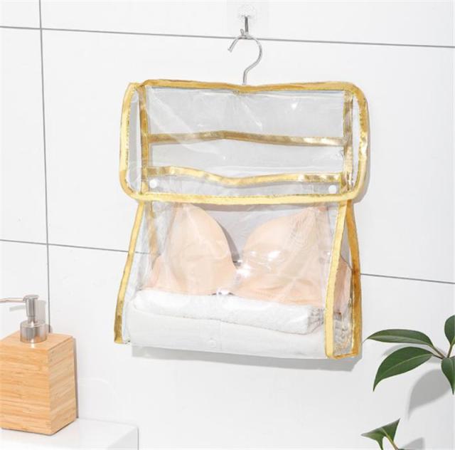 壁掛け袋 吊り下げ収納 収納ボックス 収納ケース 収納袋 下着 靴下 浴室 透明 パンツ ブラジャー 折りたたみ 仕切り 撥水 防