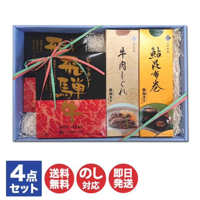 美昌堂オリジナルセット ギフト 吉田ハム 飛騨牛 ビーフカレー & 鵜舞屋 昆布巻 & 牛肉しぐれ (BS31-74) 【 美濃 飛騨 岐阜 佃煮 鮎 レトルト カレー お返し 内祝 御中元 御歳暮 敬老の日 父の日 お取り寄せ ご当地】
