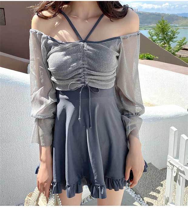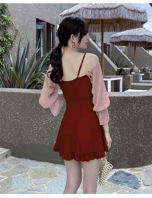 【レビュー投稿で+5%還元】ワンピース水着 レディース 体型カバー 大きいサイズ S M L 2L 3L 4L 5L 6L オトナ女子 ぽっちゃり おしゃれ ワインレッド ブルー 20代 30代 40代 半袖ママ水着 フレア 無地 パッド付き ウエスト df580c0