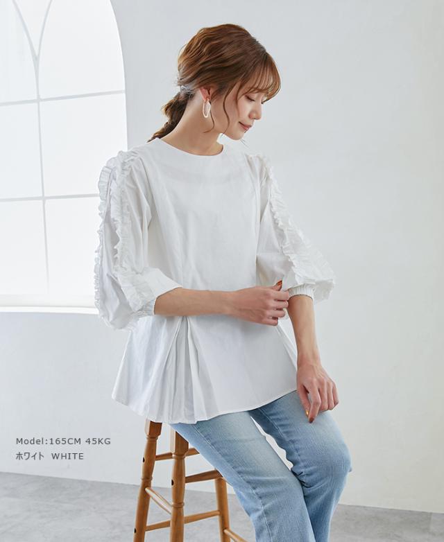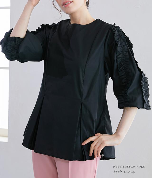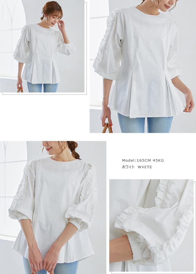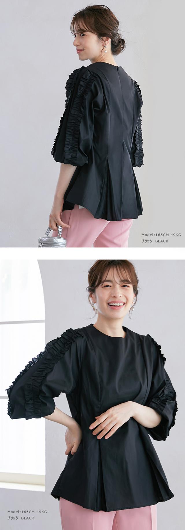 華やかな袖フリルブラウス登場です。 肩から袖口まで入った大ぶりのフリルが着映えする プルオーバータイプのブラウス。 存在感のあるフリルながらも甘すぎず大人も着られるデザインに仕上げました。 普段使いから、オフィスカジュアルまで 着回し力抜群のアイテムです。 ※モニター環境により多少色合いが異なりますので、予めご了承くださいませ。 |