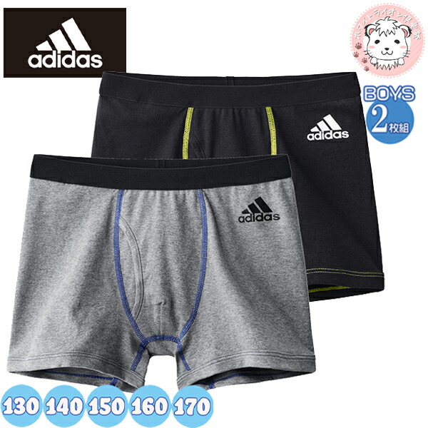 グンゼ アディダス ボクサーパンツ 2枚組 前とじ 綿100% 130cm-170cm | ロゴ キッズ ジュニア 男児 ボーイズ 綿 下着 肌着 インナー AP98652 GUNZE adidas