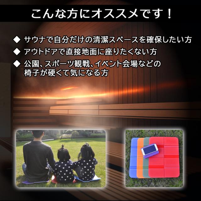 サウナマット 折り畳み 折畳み 折りたたみ お尻マット サウナグッズ レジャーシート 子供 遠足 1人用 一人用 クッション 洗える 防水防湿 メンズ レディース おしゃれ ビート板素材 軽量 コンパクト 柔らかい 持ち運び レッド赤グリーン緑パープル紫ブルー青オレンジ 8つ折り