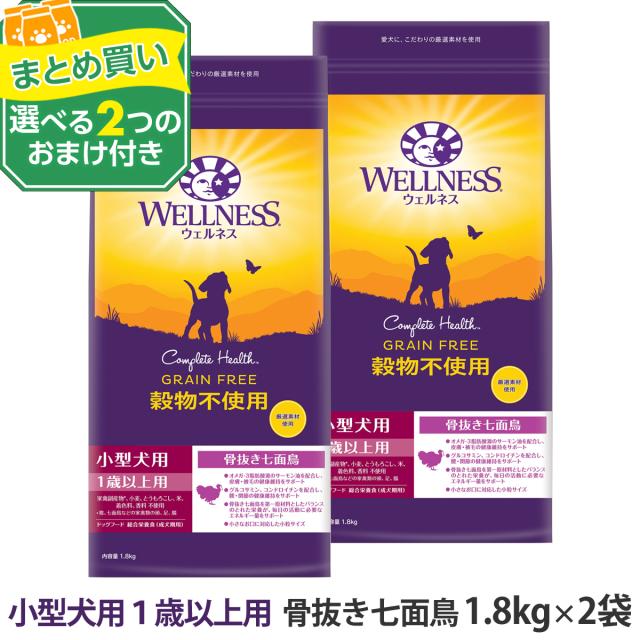 【沖縄以外送料無料】(選べる2つのおまけ付き)ウェルネス 穀物不使用 小型犬用 1歳以上用 骨抜き七面鳥 1.8kg×2袋 犬 成犬 いぬ 乳酸菌 アダルト 七面鳥 ターキー ドッグ ドック ドッグフード ドックフード ドライ