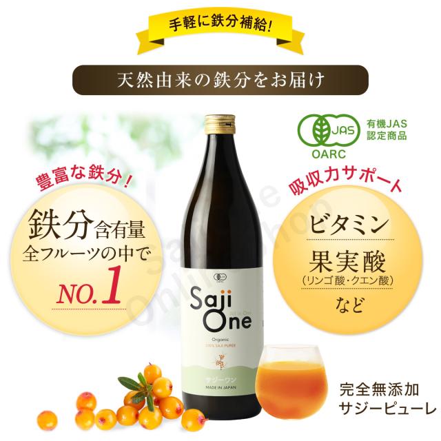 サジー SajiOneオーガニック 100% サジージュース サジーワン 900ml 1ヶ月分 鉄分 ドリンク 鉄分補給 栄養補給 美容 健康 ビタミンC ダイエット フルーツジュース 沙棘 スーパーフルーツ 無添加 オーガニック 有機JAS 送料無料