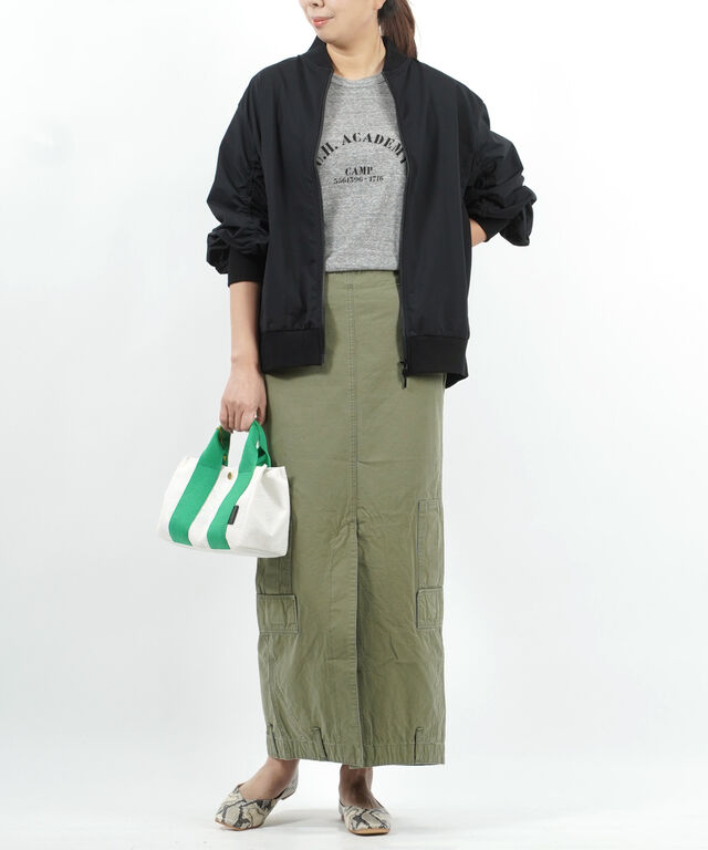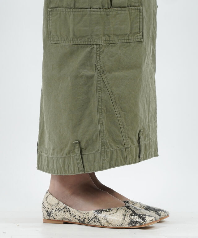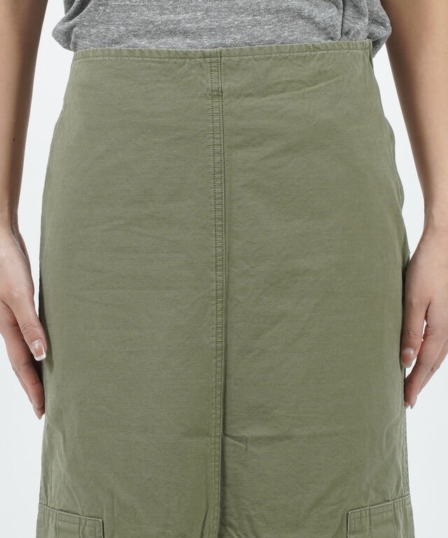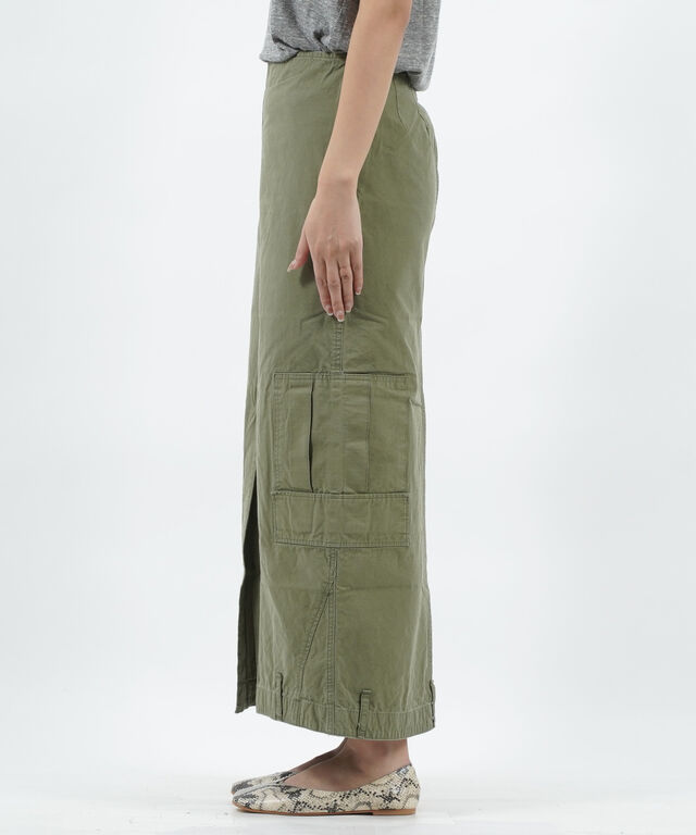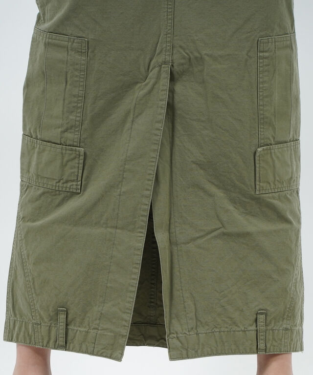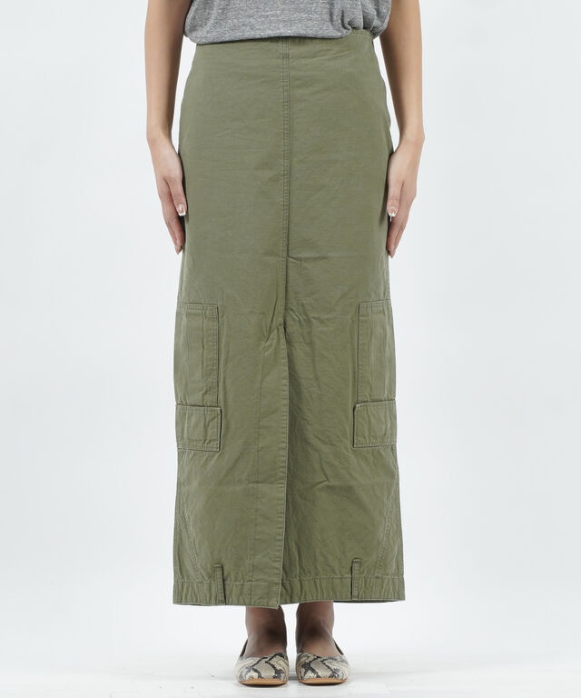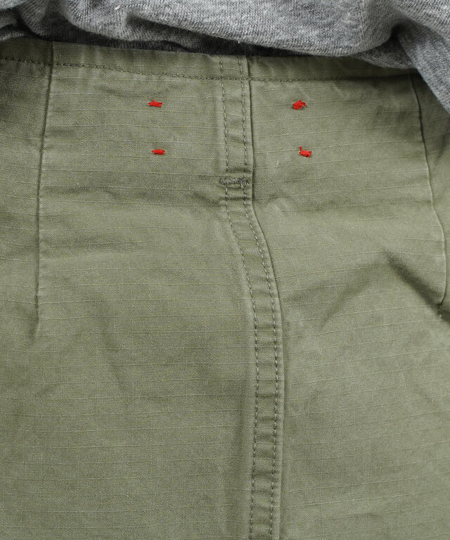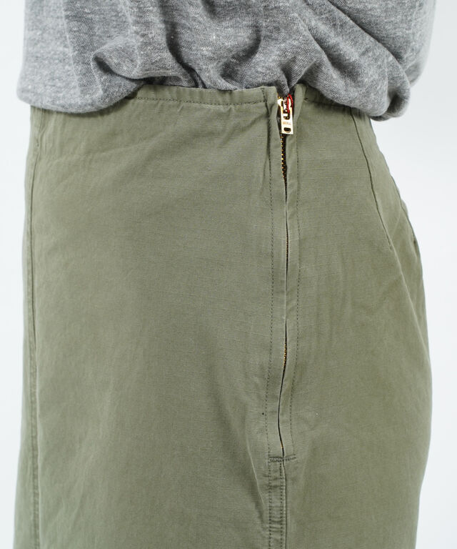 アーミーパンツの上下が逆さまになったデザインのスカート。