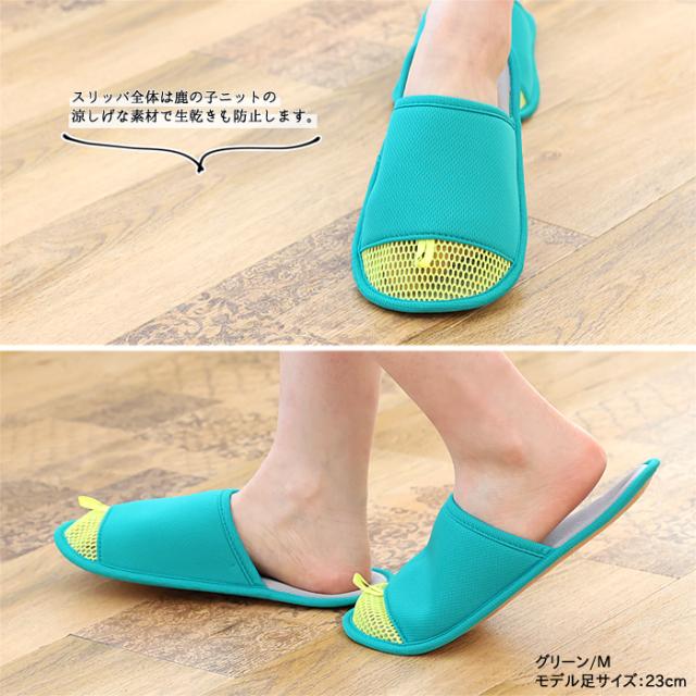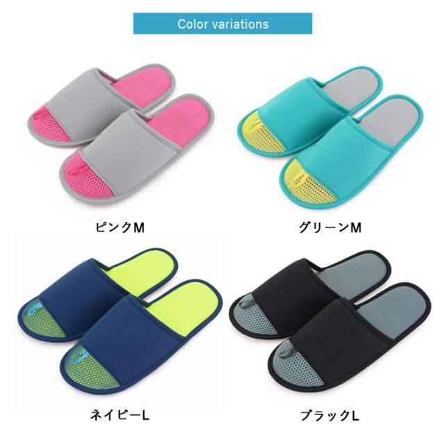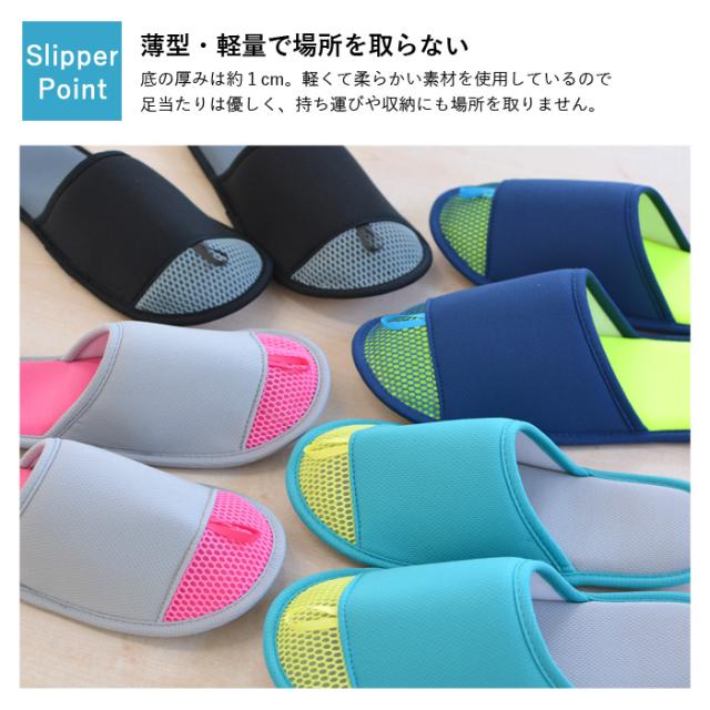 薄型でコンパクトに収納できて持ち運びにも困らない、軽量のメッシュスリッパです。