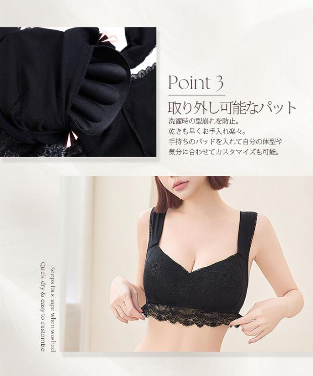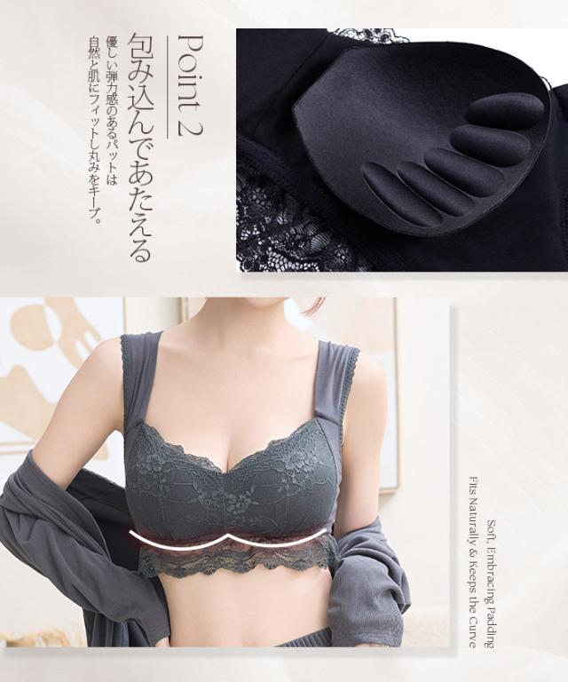 1,500円OFFクーポン!ナイトブラ 育乳 ノンワイヤー 脇高 ブラジャー 昼夜兼用 授乳ブラ マタニティブラ 大きいサイズ 補正下着 横流れ防止 産前産後 バストアップ 離れ胸 垂れ かわいい レース 30代 40代 【育乳ナイトブラ】 ダークエンジェル ●即納●