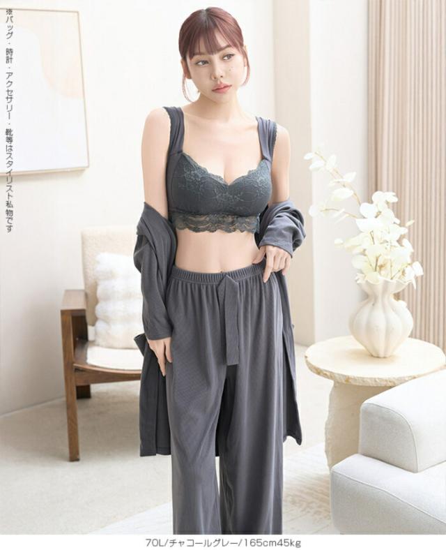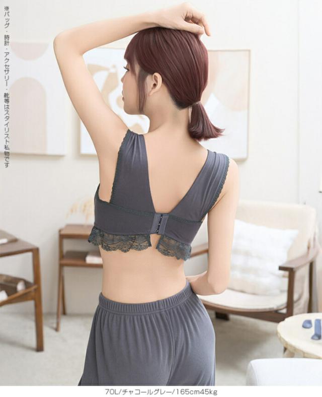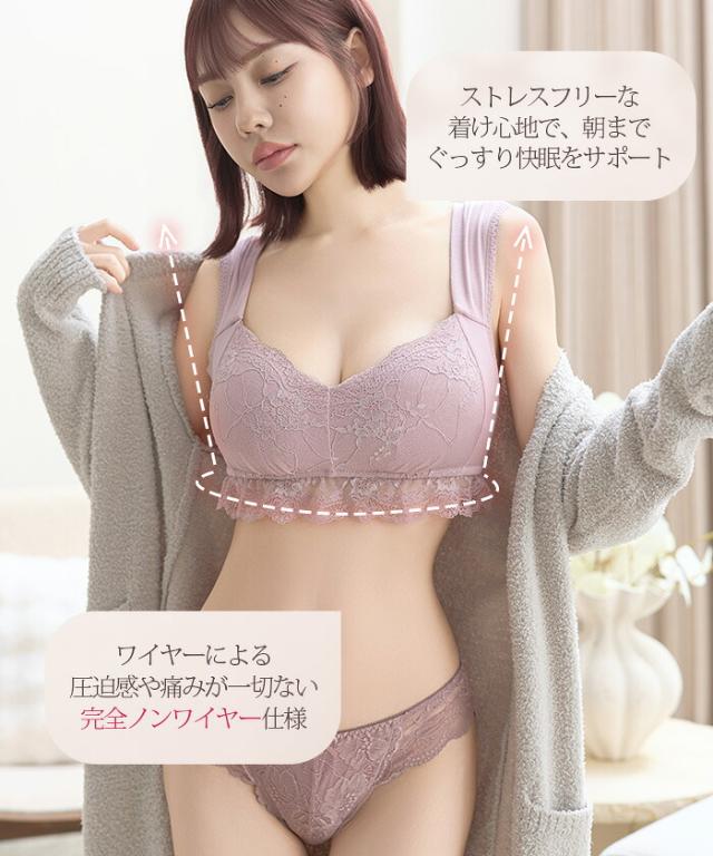 眠る時間も、動く時間も。 脇高設計×ノンワイヤーでやさしくホールドし、 バストを脇・背中から前へ整える昼夜兼用ナイトブラ。 レースが上品で見えても可愛いデザイン。 肩が痛くなりにくい太めストラップ、 肌あたりの良い伸縮カップ、 ズレを抑える幅広アンダーで長時間も快適。 A65〜F75まで対応の豊富サイズで、 小胸さんからグラマーさん、 マタニティ・授乳期まで幅広くフィットします。 《商品ポイント》 脇高サイドパネル:流れやすい脇・背中のお肉をカップに誘導し、すっきり見え。 ノンワイヤー:締め付け感を抑えてラクな着け心地。就寝時にも◎ 太めストラップ:肩への食い込みを軽減。長時間でも痛くなりにくい。 ハンド型パッド風の立体カップ:丸みのある美しいラインをメイク。取り外し/調整OKタイプ想定。 レースデザイン:透け過ぎない上品レースで大人可愛い。インナー見せにも使える。 昼夜兼用:リラックスタイムから日中の外出までこれ一枚で。 《デザイン・シルエット》 【アウターに響きにくい脇高設計】 気になる脇肉や背中の段差をフラットに整える脇高設計を採用。タイトなトップスや薄手のニットの下に着用しても、ボディラインをすっきりと美しく見せます。 《コーディネート提案》 就寝時のナイトブラとして パジャマの下に着けて、寝ている間の「バストの崩れ・垂れ」を徹底ガード。 日中の普段使い(デイリーユース)に ワイヤーブラが苦手な人の仕事用インナーや、買い物などのお出かけ時にも。しっかりホールドしながら楽な着け心地を実現。 マタニティ・授乳インナーとして 妊娠中のバストサイズの変化に対応し、産後はそのまま授乳用として。忙しいママの24時間をサポートします。 《サイズ・カラーバリエーション》 サイズ:65M/65L/70M/70L/75M/75L カラー:ブラック/チャコールグレー/スモークピンク 《素材・機能性》 ・素材:本体:レーヨン90%、ポリウレタン10% レース:ナイロン90%、ポリウレタン10% ・透け感:なし ・伸縮性:あり(優しくフィット) ・厚み:薄手 |
