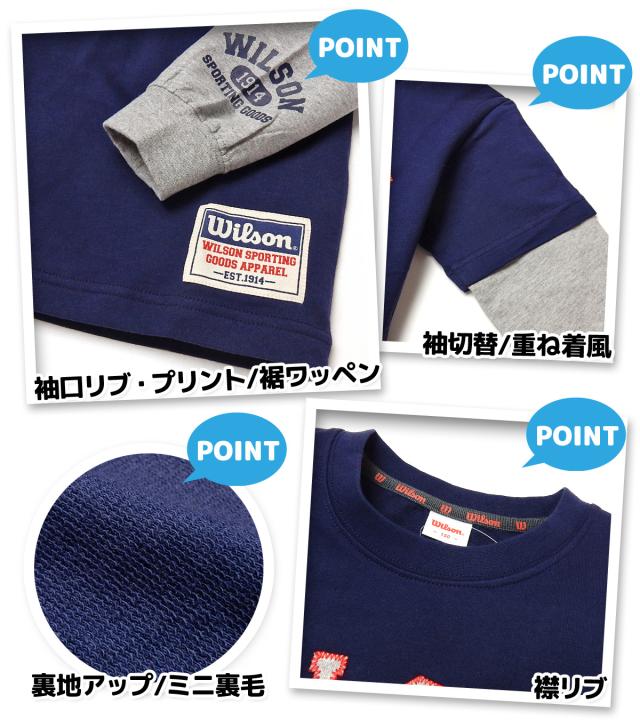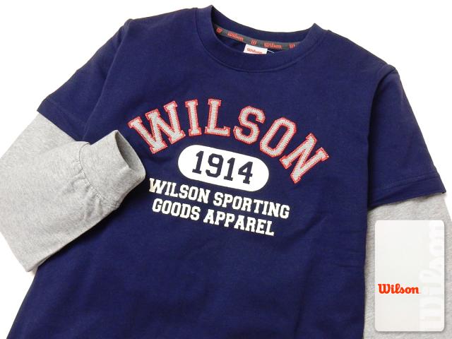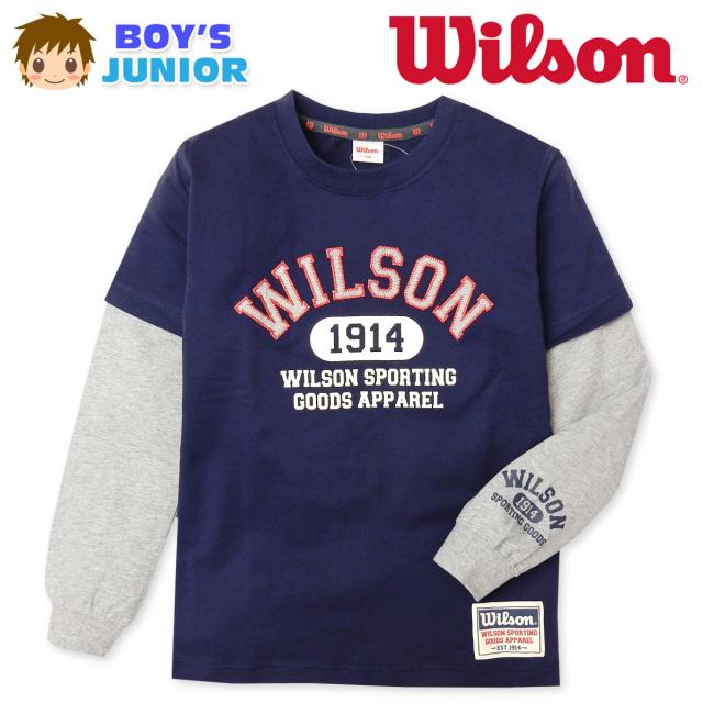 【送料無料】男児 ジュニア 重ね着風 ミニ裏毛 Tシャツ Wilson 本体綿100% ワッペン ロゴ 子供服 男の子 td-0019a-nv【メール便対応】