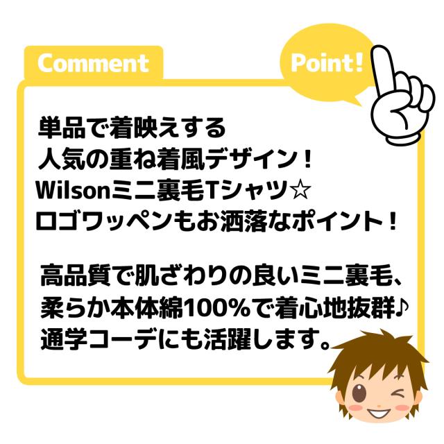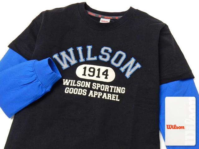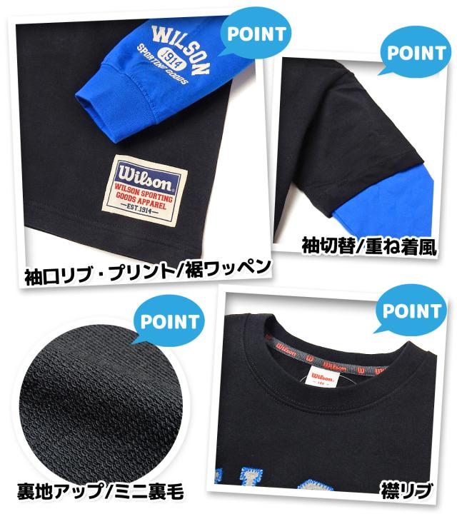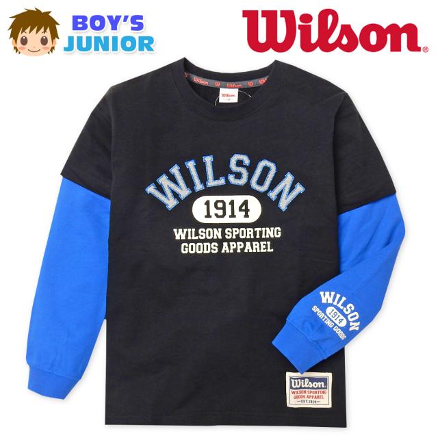 【送料無料】男児 ジュニア 重ね着風 ミニ裏毛 Tシャツ Wilson 本体綿100% ワッペン ロゴ 子供服 男の子 td-0019b-bk【メール便対応】