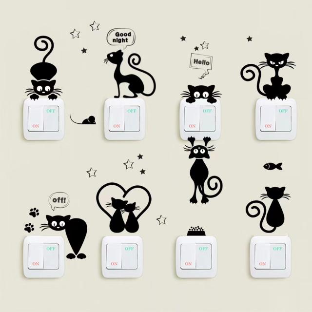 ウォールステッカー AED024 クロネコ スイッチシール 癒す DIY 壁紙 インテリアシート 剥がせるシール 送料無料