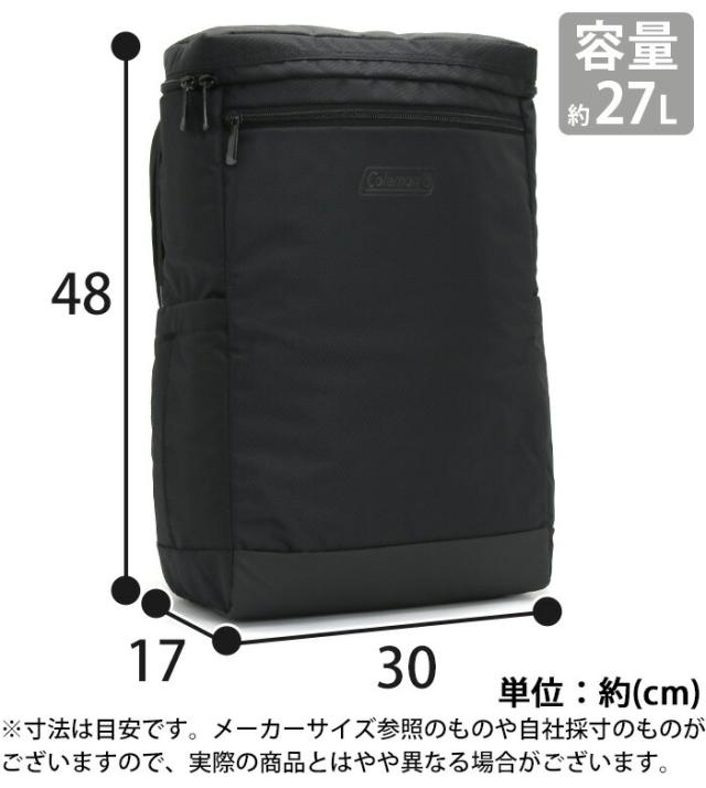 Coleman コールマン アウトビズ ボックス リュック 正規品 メンズ リュックサック BOX型 スクエアリュック レディース 男女兼用 通勤 通学 学校 学生 ビジネス A4 B4 PC収納 タブレット 中学生 高校生 黒 ブラック きれいめ カジュアル 27L OUTBIZ BOX