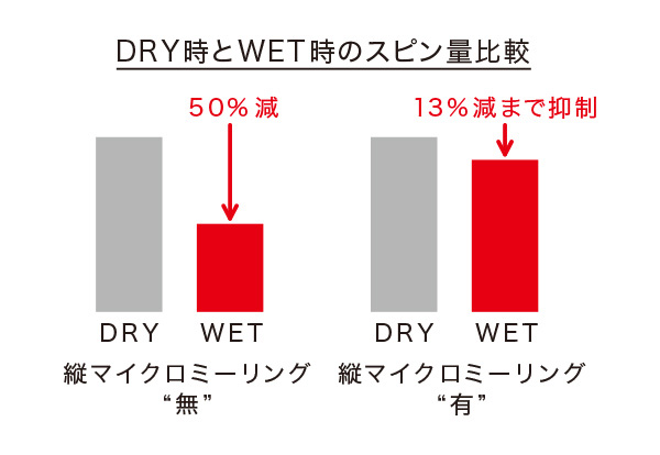 水分の影響をあまり受けないので、雨やラフからでもスピン量が安定する。