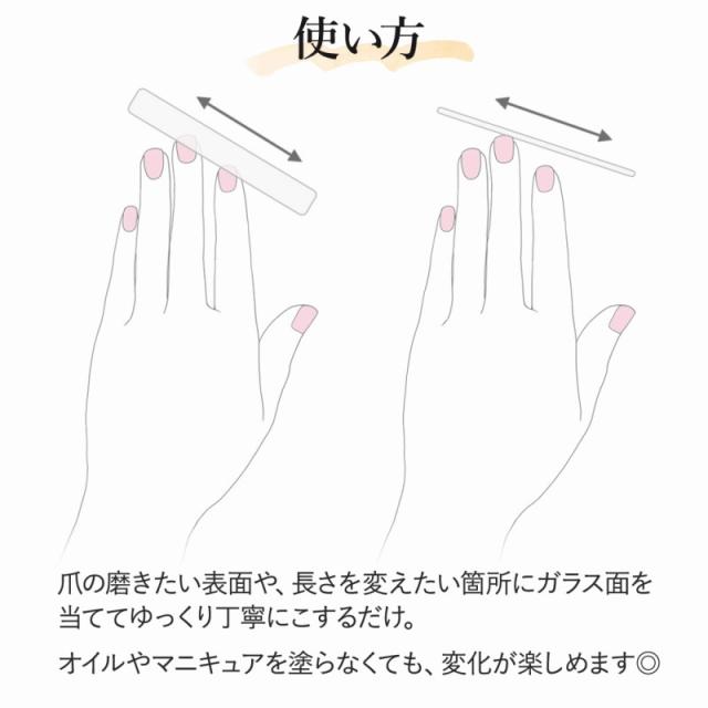 爪の磨きたい表面や、長さを変えたい箇所にガラス面を当ててゆっくり丁寧にこするだけ。