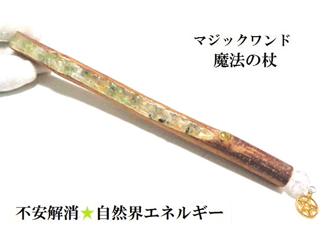 自然界エネルギー・精神のバランス・真実を見抜く・不安解消・調和と協調★プレナイト・ペリドッド★魔法・魔術★魔法の杖★木製・ウッド★マジックワンド★ヒーリングマジックワンド★パワーストーン★護符(霊符)