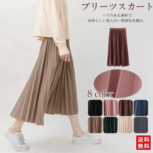 レディーススカート プリーツスカート ロングスカート 大人可愛いプリーツ ウエストゴム シフォン レディース ゆったり オシャレ 春夏服