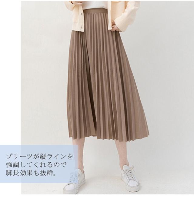 プリーツが縦ラインを強調してくれるので脚長効果も抜群。
