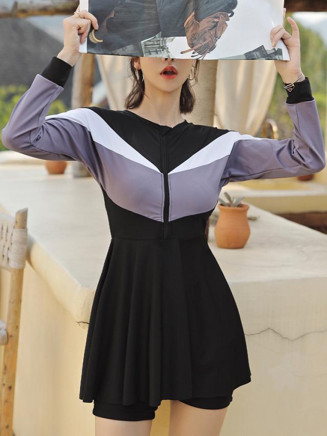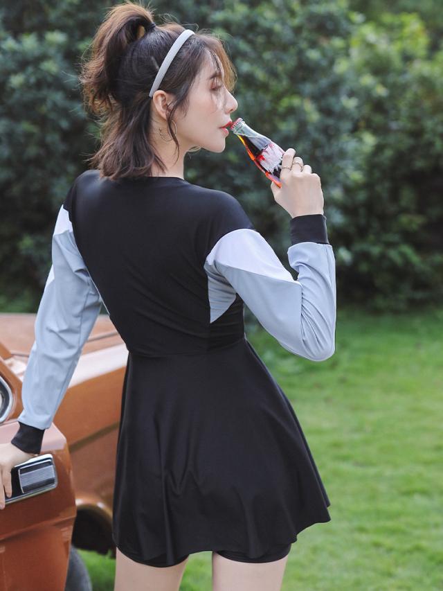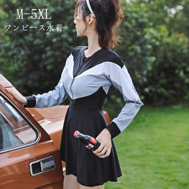 【レビュー投稿で+5%還元】2点セット ワンピース水着 ぽっちゃり 水着 レディース 大きいサイズ 韓国 ガール 長袖付き 痩せ見え 体型カバー ぽっちゃり水着日焼け止め 温泉 ビーチ プール 海 水泳 女子 df056z7