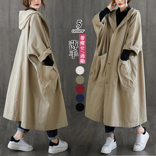 トレンチコート レディース アウター ロング フード付き きれいめ オーバーサイズ 大きいサイズ 春 プレゼント 春用 秋用 ゆっ