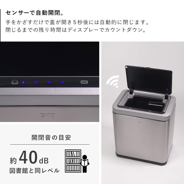 ゴミ箱,EKO,eko,ステンレス,自動開閉,小さい,ふた付き,電池式,ごみ箱,ダストボックス,12リットル,12l,12L,スリム,洗面所,トイレ,コンパクト,小さめ,フタ付き,蓋つき,ふた,フタ,蓋,自動,開閉,オート開閉,オートクローズ,センサー,センサー式,センサー付き,直接手が触れない,非接触,触らない,触れない,電池,タッチ,タッチ式,タッチボタン,汚れが付きにくい,汚れにくい,清潔,衛生的,高級,高級感,生活感が出ない,すっきり,北欧,シンプル,スタイリッシュ,おしゃれ,お洒落,オシャレ,インテリア,一人暮らし,独り暮らし,